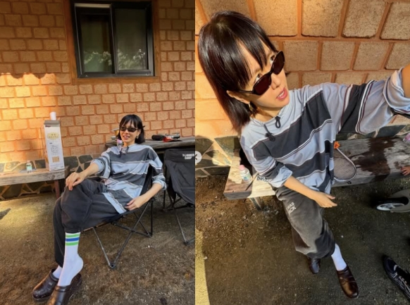 공개된 사진에는 의자에 앉아 휴식 중인 손예진의 모습이 담겨 있다. 손예진은 티셔츠, 트레이닝팬츠로 편안한 차림을 선보였으며 양말, 슬리퍼로 친근함까지 주고 있다.