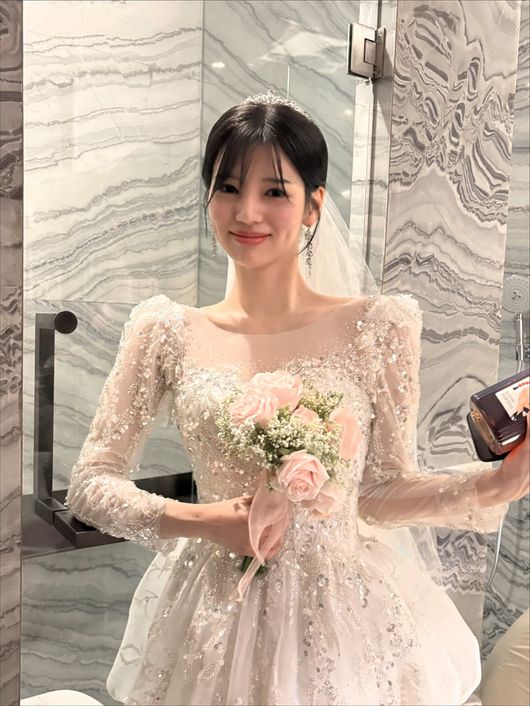 유병재와 공개 열애 중인 안유정이 웨딩드레스를 입은 근황을 공개했다.