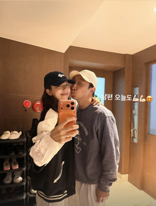 공개된 사진에서는 이규혁의 볼뽀뽀를 받고 있는 손담비의 모습이 담겼다. 두 사람은 여전히 달달한 애정을 드러내며 훈훈함을 안긴다.