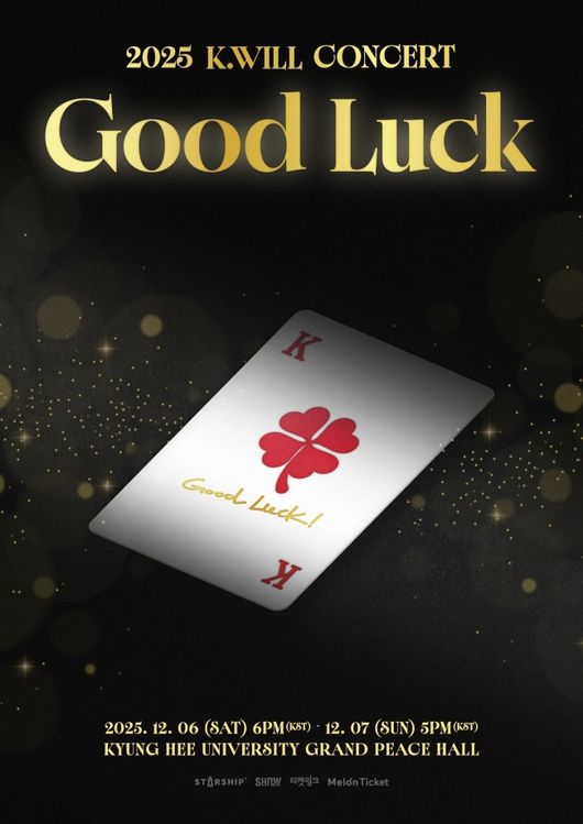 소속사 스타쉽엔터테인먼트는 지난 13일 케이윌 공식 SNS를 통해 2025 케이윌 콘서트 '굿 럭(Good Luck)' 포스터를 게재하며 단독 공연 개최 소식을 알렸다.