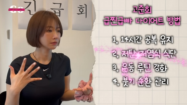 이날 고준희는 "약간 부은것 같다"는 말에 "요즘 많이 먹지도 않았다. 하루이틀 먹었는데 살이 너무 많이 쪘다. 원래 급하게 찐 살은 가만히 두면 그대로 살이 된다. 급찐급빠 다이어트를 해보려고 한다. 내가 3일동안 14시간 공복을 유지하려 한다. 그리고 저탄수, 저염식 다이어트를 해보려고 한다. 운동은 최대한 많이 해보려고 한다. 약간 부어있는것 같으니까 순환에 좋은걸 많이 해보려고 한다"고 털어놨다.
