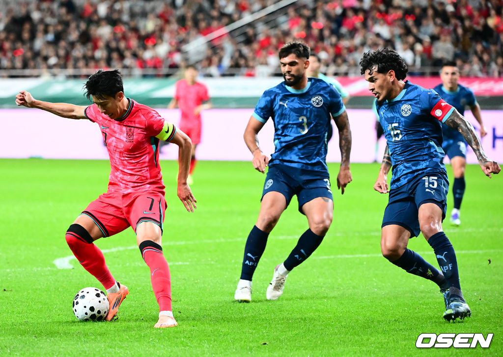 전반 한국 손흥민이 파라과이 문전에서 볼을 다루고 있다. 2025.10.14. /jpnews@osen.co.kr