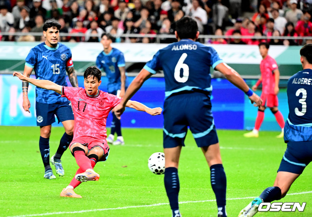전반 한국 엄지성이 선제골을 넣고 있다. 2025.10.14. /jpnews@osen.co.kr