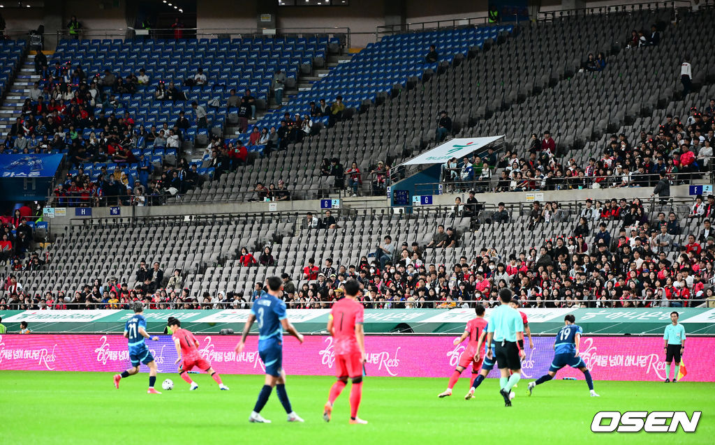 전반 관중석이 절반 가까이 비어진 채 경기가 펼쳐지고 있다. 2025.10.14. /jpnews@osen.co.kr