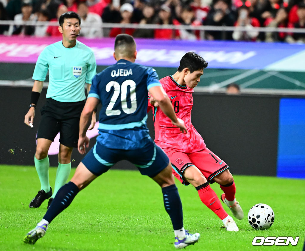 전반 한국 이동경이 슛을 시도하고 있다. 2025.10.14. /jpnews@osen.co.kr