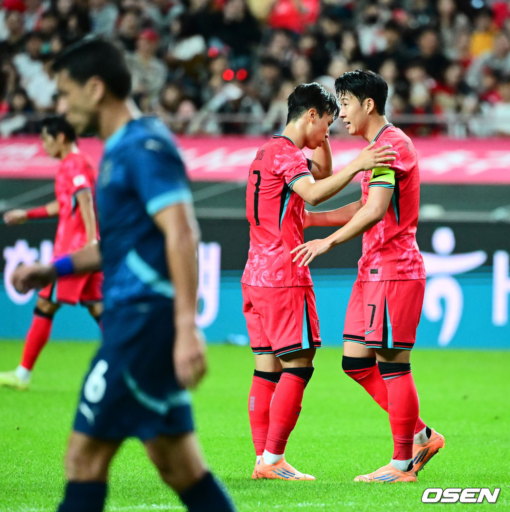 전반 엄지성, 손흥민이 아쉬워하고 있다. 2025.10.14. /jpnews@osen.co.kr
