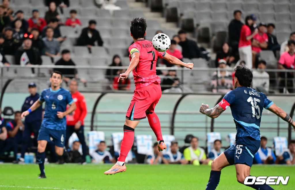 전반 손흥민의 헤더가 빗나가고 있다. 2025.10.14 /cej@osen.co.kr