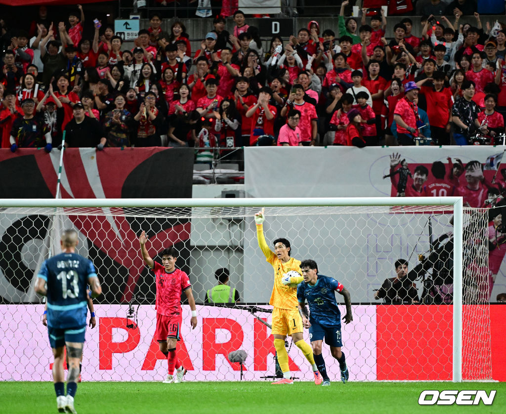 전반 대한민국 김승규의 선방에 관중들이 기뻐하고 있다. 2025.10.14 /cej@osen.co.kr