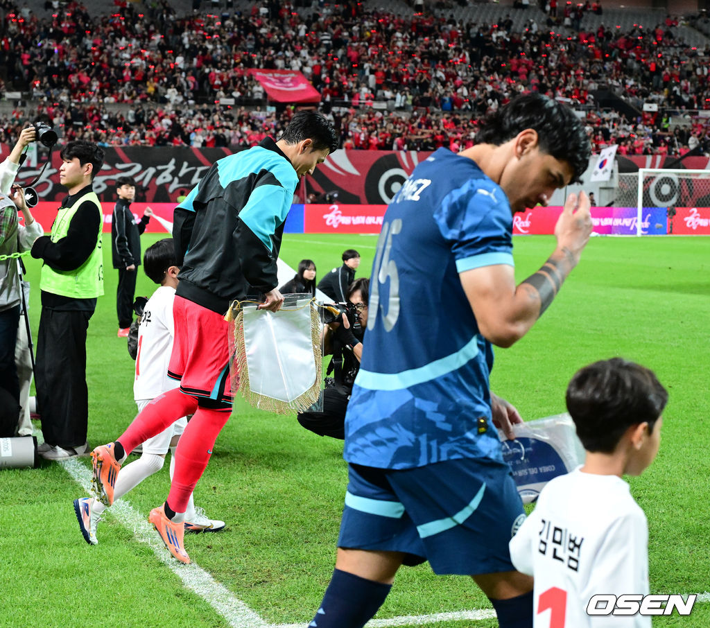 브라질전 출전으로 한국 축구 A매치 최다 출전(137경기) 금자탑을 쌓은 손흥민이 이번에도 선발로 나서며 138경기로 기록을 늘렸다. 피치에 들어서는 손흥민. 2025.10.14. /jpnews@osen.co.kr