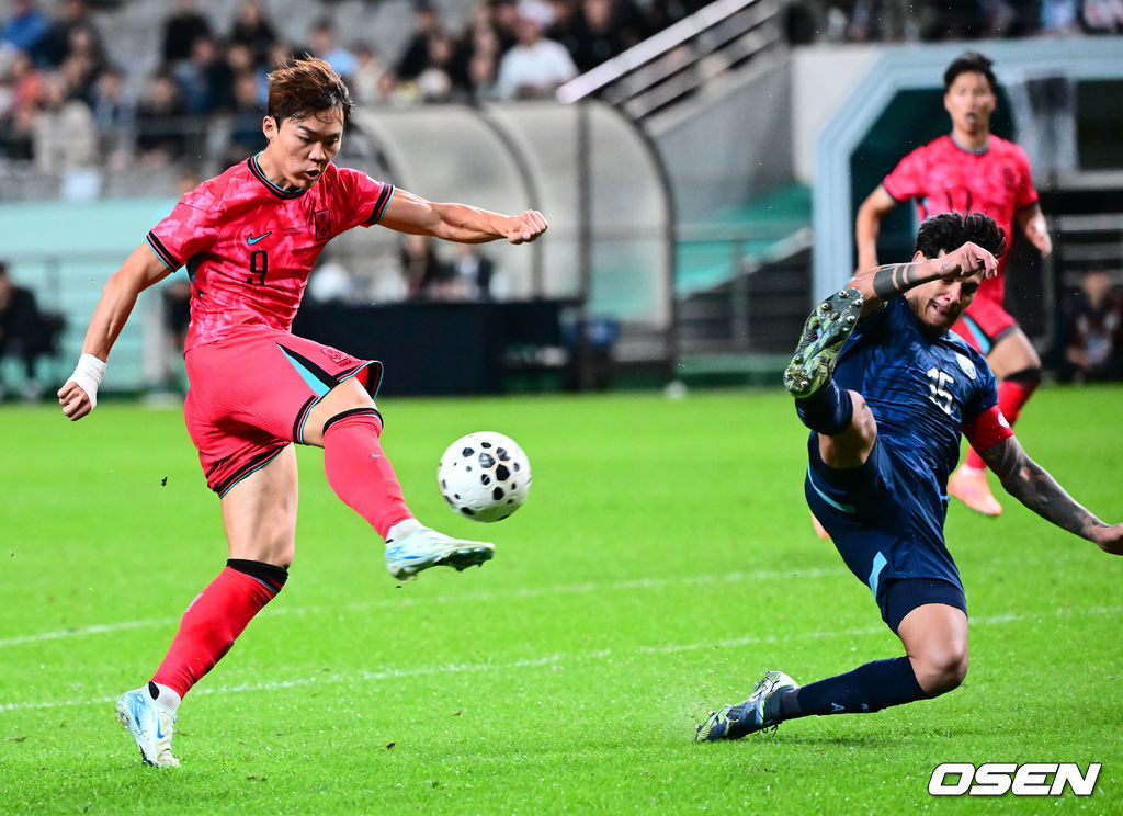 후반 한국 오현규가 슛을 시도하고 있다. 2025.10.14. /jpnews@osen.co.kr