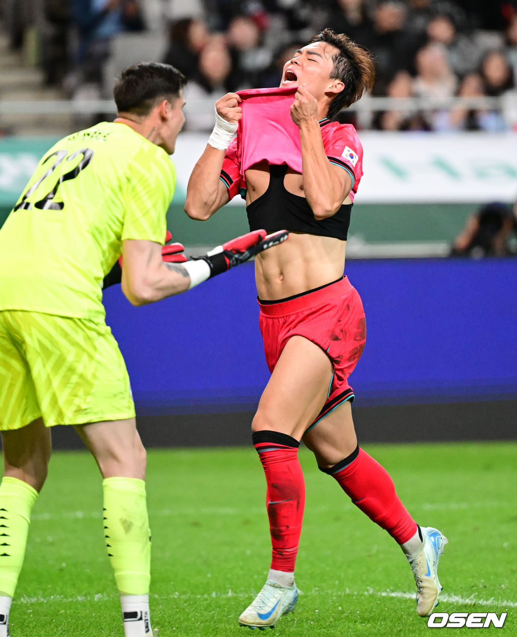 후반 대한민국 오현규가 슛이 들어가지 않자 아쉬워하고 있다. 2025.10.14 /cej@osen.co.kr