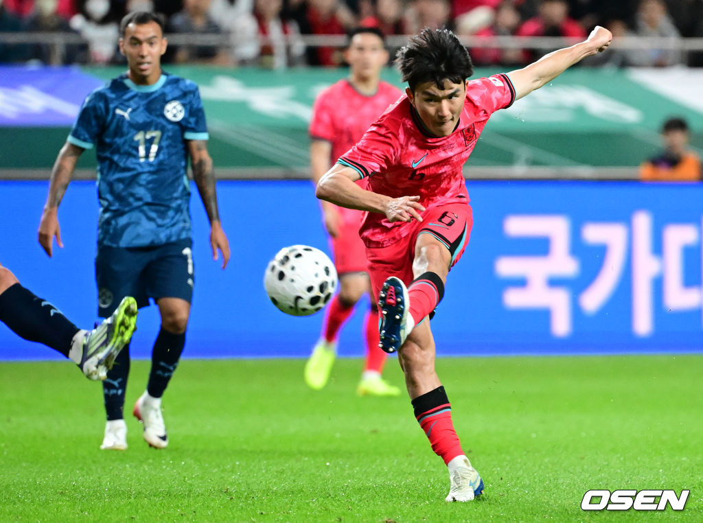 후반 대한민국 황인범이 슛을 시도하고 있다. 2025.10.14 /cej@osen.co.kr