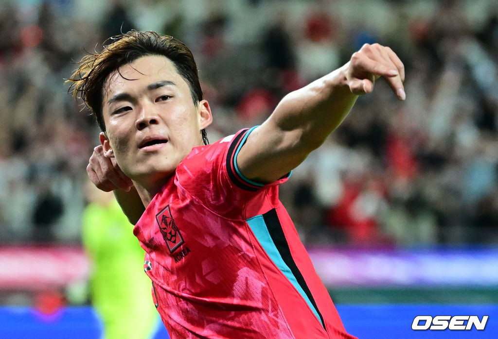후반 대한민국 오현규가 팀의 두 번째 골을 넣은 뒤 세리머니를 하고 있다. 2025.10.14 /cej@osen.co.kr