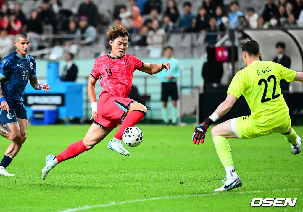 후반 한국 오현규가 골을 성공시키고 있다. 2025.10.14. /jpnews@osen.co.kr