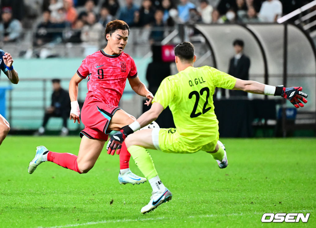 후반 한국 오현규가 골을 성공시키고 있다. 2025.10.14. /jpnews@osen.co.kr