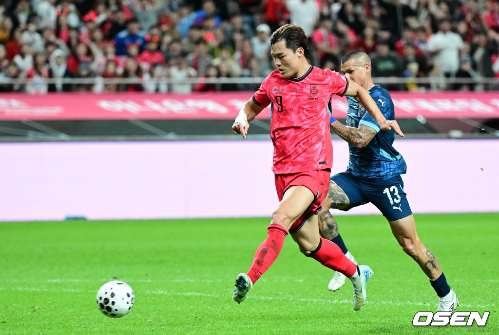 후반 대한민국 오현규가 팀의 두 번째 골을 넣고 있다. 2025.10.14 /cej@osen.co.kr