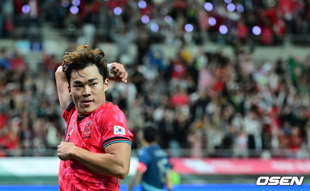 대한민국의 두 번째 골을 넣은 오현규가 세리머니를 하고 있다. 2025.10.14 /cej@osen.co.kr