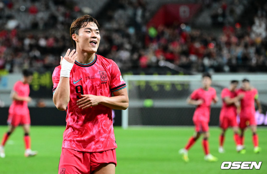 대한민국의 두 번째 골을 넣은 오현규가 세리머니를 하고 있다. 2025.10.14 /cej@osen.co.kr