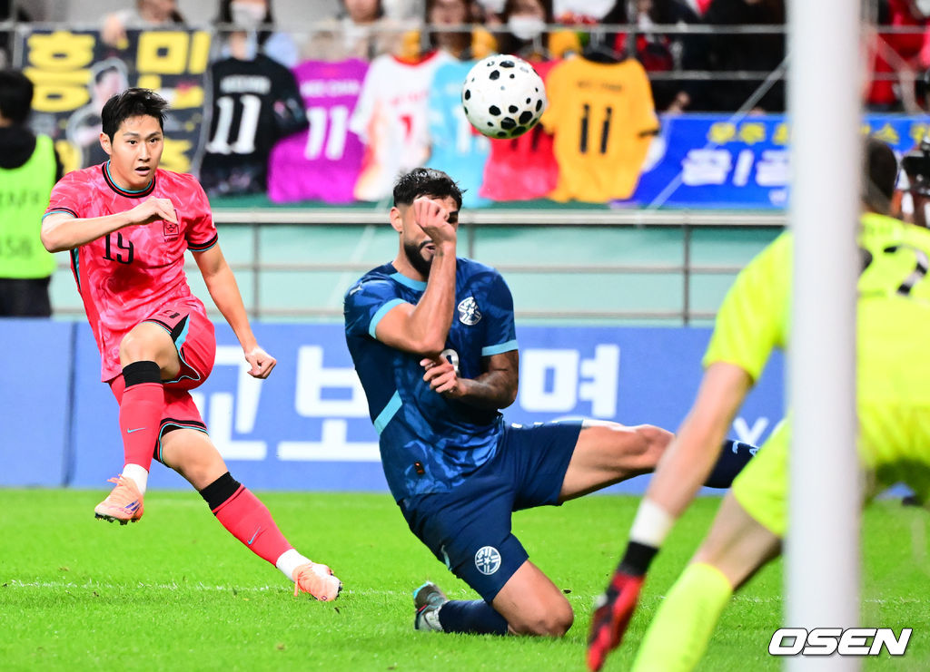 후반 한국 이강인이 크로스를 올리고 있다. 2025.10.14. /jpnews@osen.co.kr