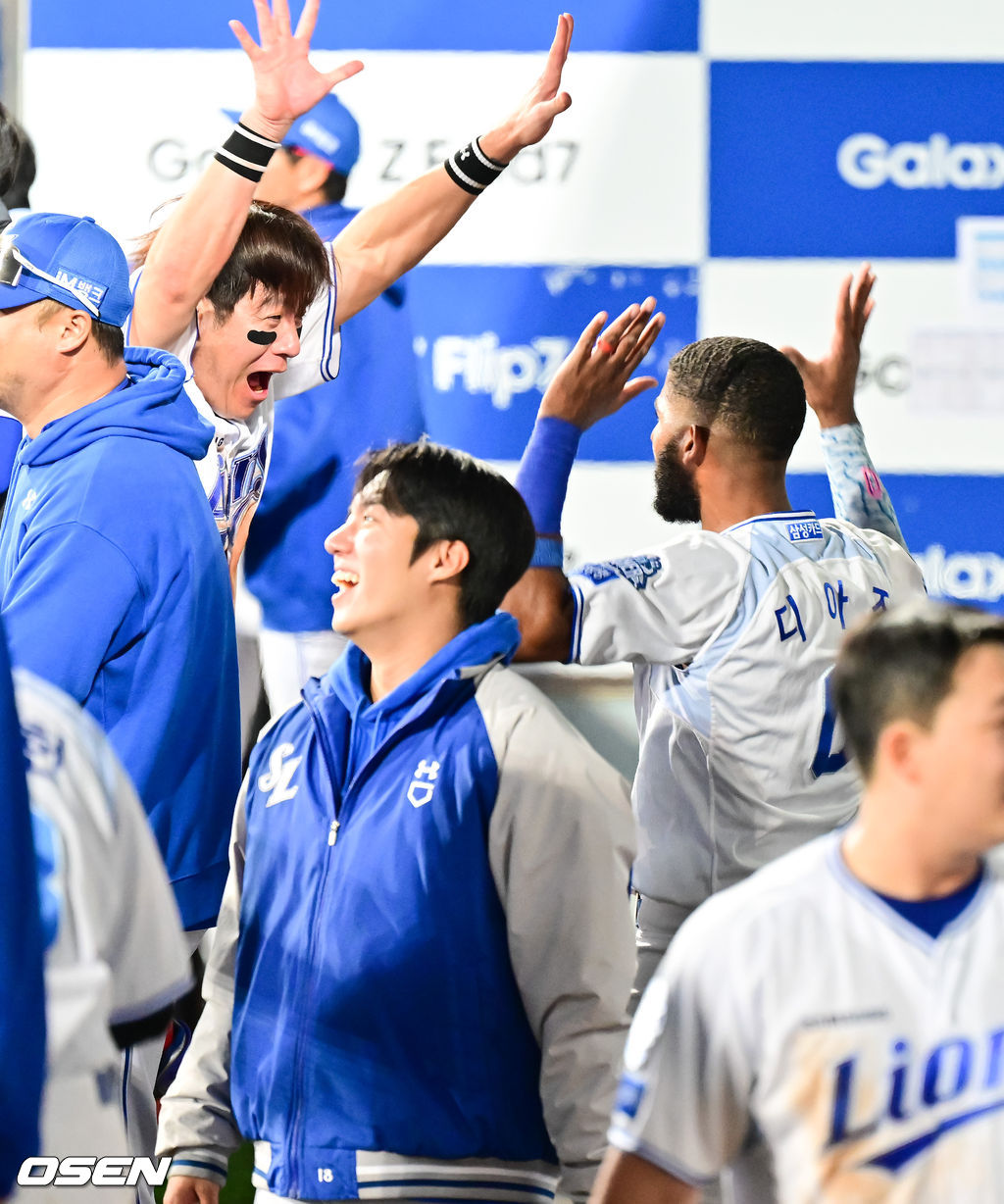 8회말 삼성 강민호가 결승 홈런 날린 디아즈와 하이파이브를 하고 있다. 2025.10.14 / soul1014@osen.co.kr