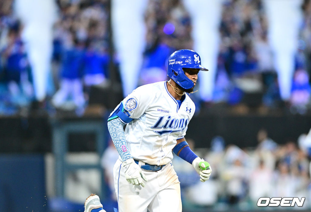 8회말 2사 1루 상황 삼성 디아즈가 SSG 이로운을 상대로 다시 앞서가는 우월 투런포를 날리고 그라운드를 돌고 있다. 2025.10.14 / dreamer@osen.co.kr
