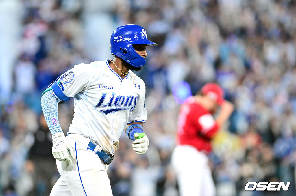 8회말 2사 1루 상황 삼성 디아즈가 SSG 이로운을 상대로 다시 앞서가는 우월 투런포를 날리고 그라운드를 돌고 있다. 2025.10.14 / dreamer@osen.co.kr