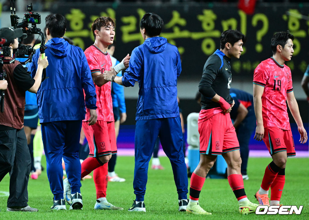 대한민국 오현규가 승리를 기뻐하고 있다. 2025.10.14 /cej@osen.co.kr