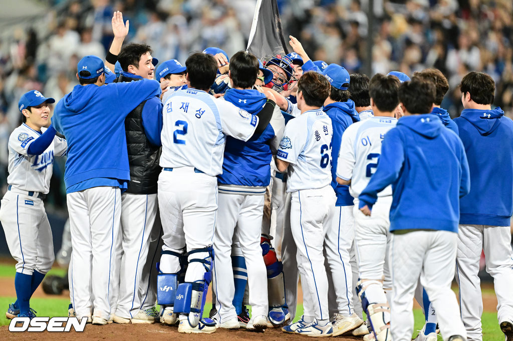 경기종료 후 삼성 선수들이 승리의 기쁨을 나누고 있다. 2025.10.14 / soul1014@osen.co.kr