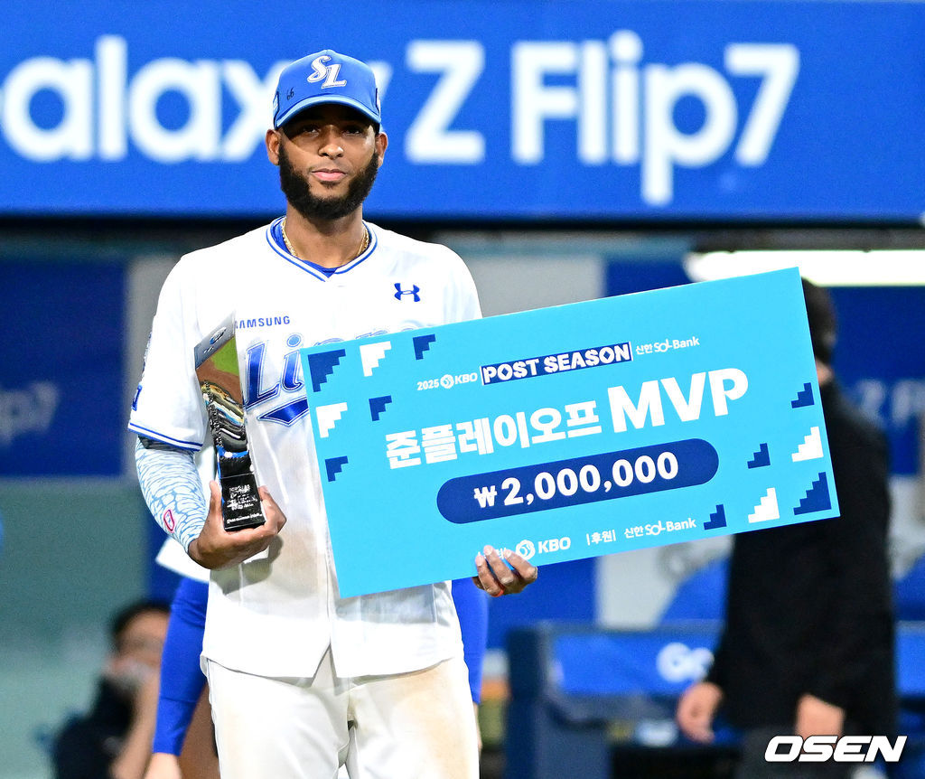 준플레이오프 MVP로 선정된 삼성 디아즈가 포즈를 취하고 있다. 2025.10.14 / dreamer@osen.co.kr