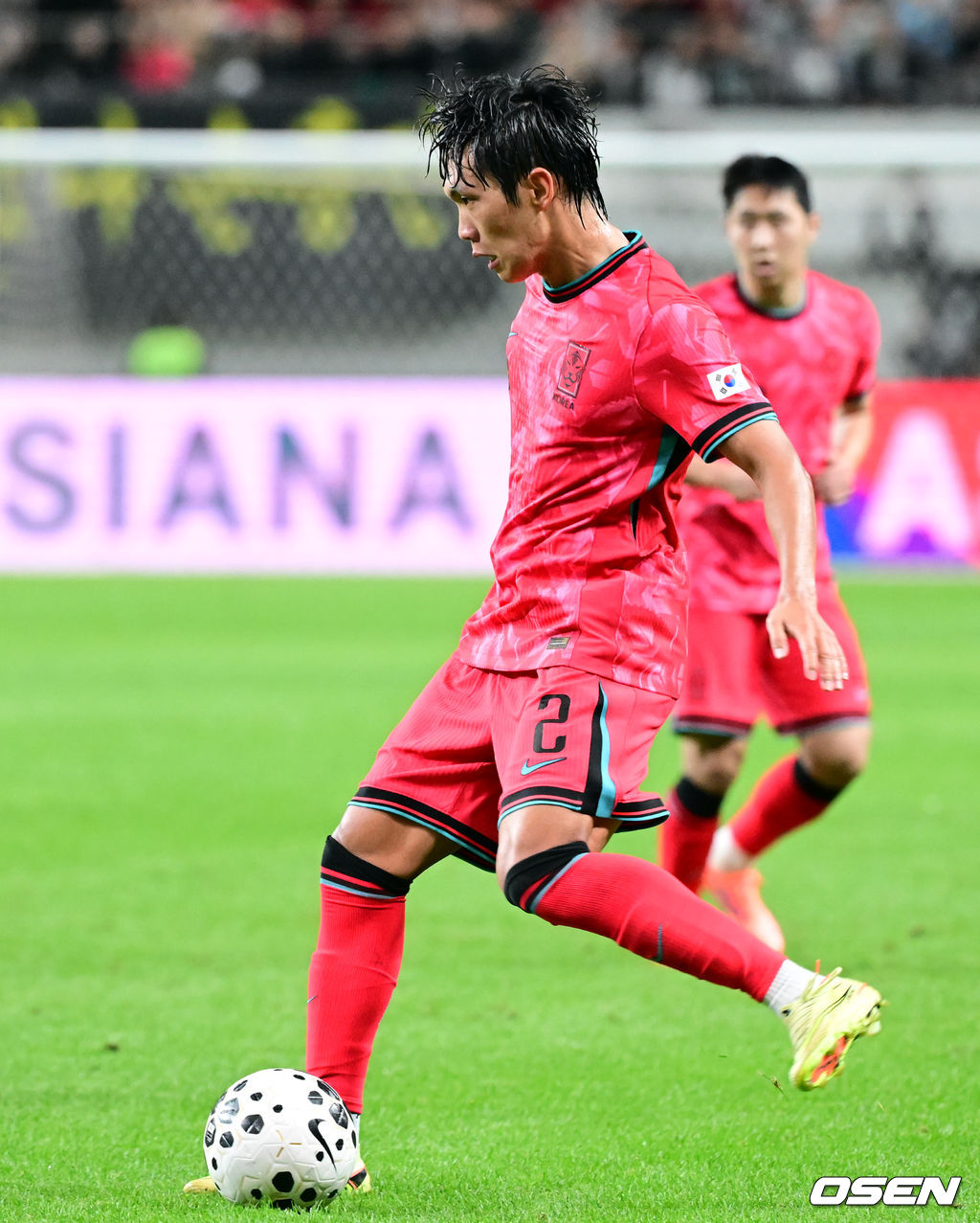 대한민국 이명재가 크로스를 올리고 있다. 2025.10.14 /cej@osen.co.kr