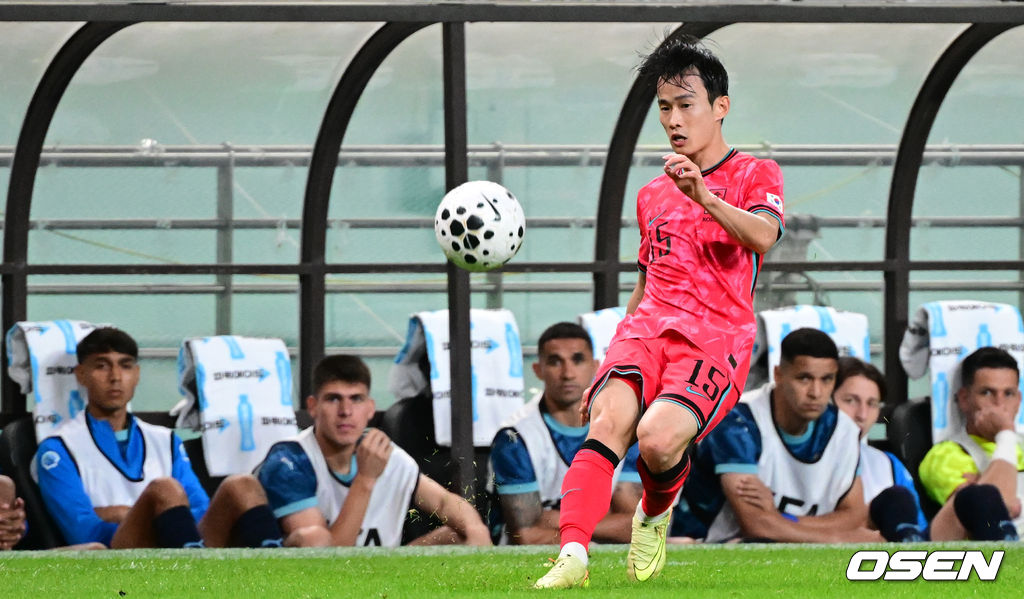전반 대한민국 김문환이 센터링을 올리고 있다. 2025.10.14 /cej@osen.co.kr