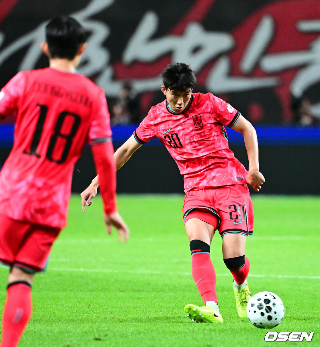 전반 한국 이한범이 패스를 하고 있다. 2025.10.14. /jpnews@osen.co.kr