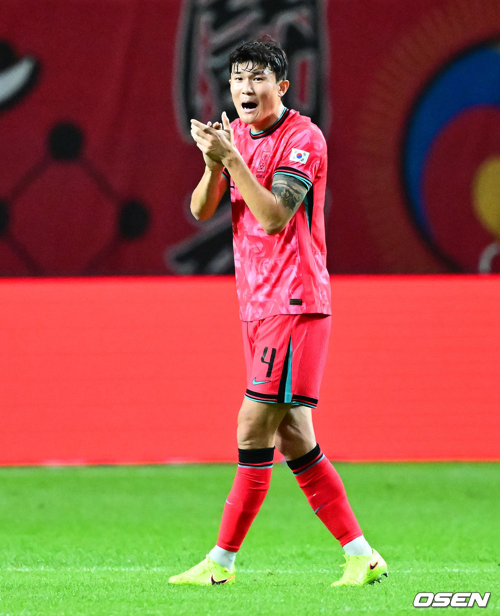 전반 한국 김민재가 동료선수들을 독려하고 있다. 2025.10.14. /jpnews@osen.co.kr