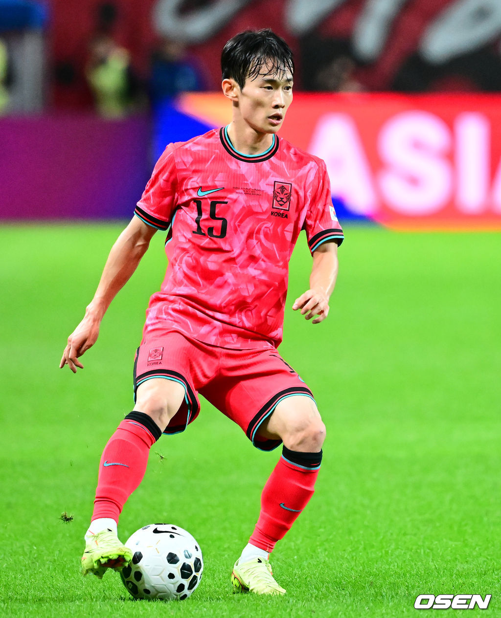 전반 한국 김문환이 패스할 곳을 찾고 있다. 2025.10.14. /jpnews@osen.co.kr