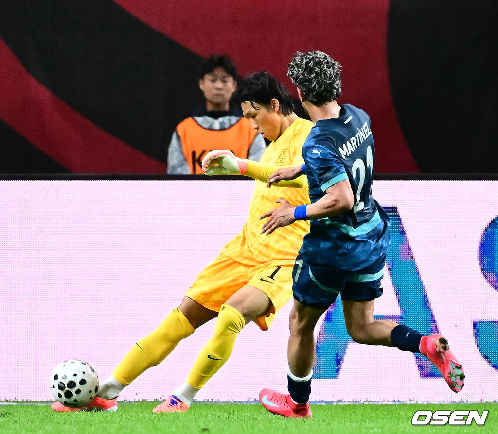 전반 한국 김승규 골키퍼가 볼을 처리하고 있다. 2025.10.14. /jpnews@osen.co.kr