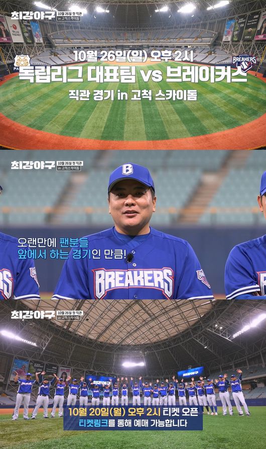 10월 26일(일) 오후 2시, 고척 스카이돔에서 열리는 JTBC ‘최강야구’(기획 황교진 연출 성치경, 안성한, 정윤아) ‘브레이커스’의 첫 직관 상대가 ‘독립리그 대표팀’으로 확정됐다.