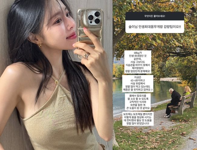 이솔이는 자신의 소셜미디어(SNS) '무엇이든 물어보세요(무물)' 기능을 통해 팬들의 질문에 직접 답하는 시간을 가졌다. 한 팬이 '솔이님 인생 최대 몸무게랑 감량팁이요!!'라고 질문했다.