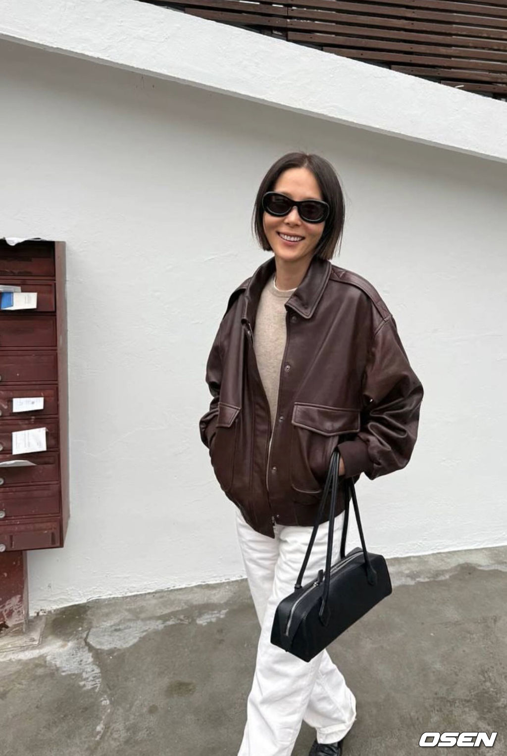 김나영은 특유의 노 메이크업 상태에 갈색 레더 재킷을 걸친 채 환하게 웃고 있다. 흐린 날씨 속에서도 선글라스를 착용하며 멋진 워킹을 보이기도 한다.