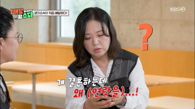그 순간, 이영자는 김숙의 휴대폰 화면을 유심히 보더니 기습적인 돌직구를 날렸다. 이영자는 "너 얘(?)랑 연락 주고받는구나"라고 운을 떼더니, "걔 결혼하는데 왜"라고 말해 김숙을 당황하게 만들었다.