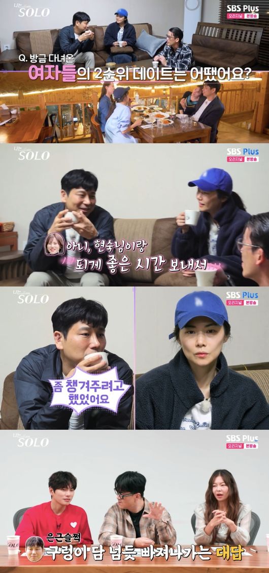 영숙은 “현숙님에게 마음이 생겼다는 거냐”라고 물었지만, 영수는 “잘 모르곘다. 재밌고 좋은 시간 보냈다”라며 “좀더 알아가고 싶은 마음도 들었죠. 그 뒤에 복기하는데 또 여러 이야기 나눴다”라고 애매모호하게 답했다.