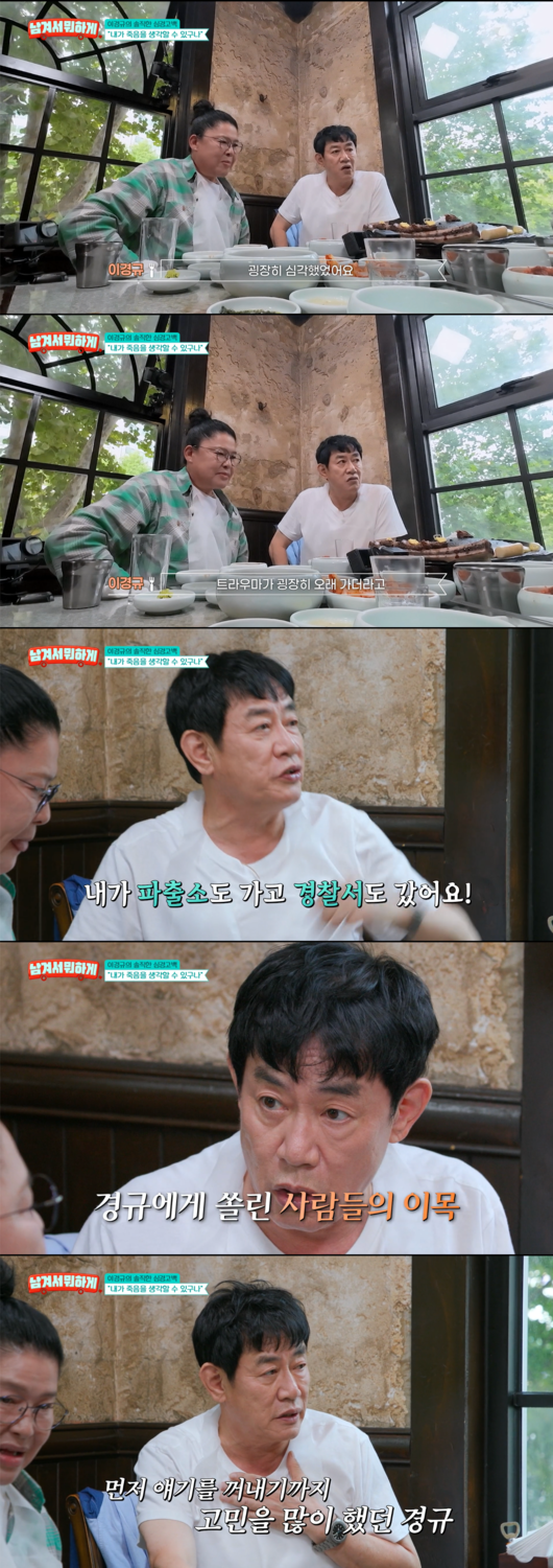 '남겨서 뭐하게’ 이경규가 최근 겪었던 힘든 일(약물 운전 혐의)에 대해 죽음을 생각했을 만큼 심각했던 심경과 깊은 트라우마를 솔직하게 고백했다.