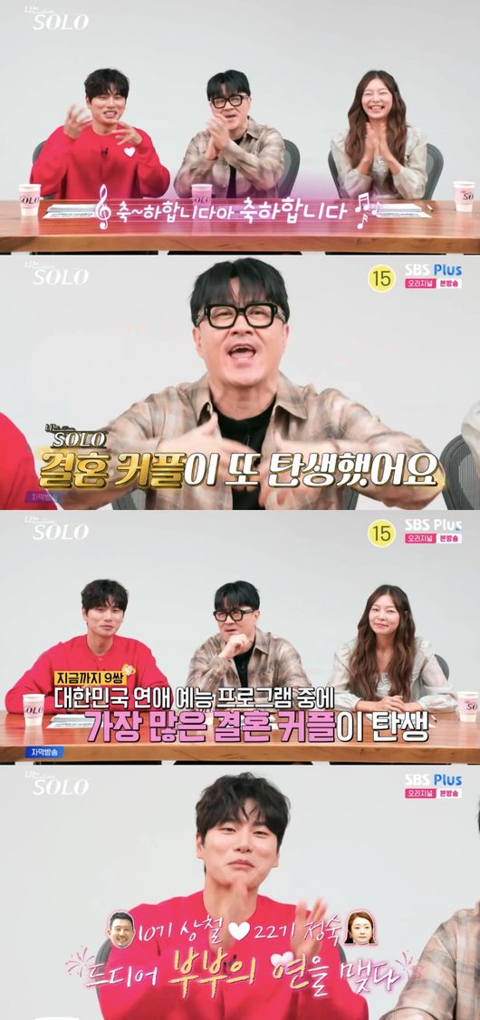 15일 방송된 SBS플러스, ENA ‘나는 SOLO’에서는 오프닝부터 데프콘, 송해나, 이이경이 기수 내 결혼 커플 탄생을 알렸다.