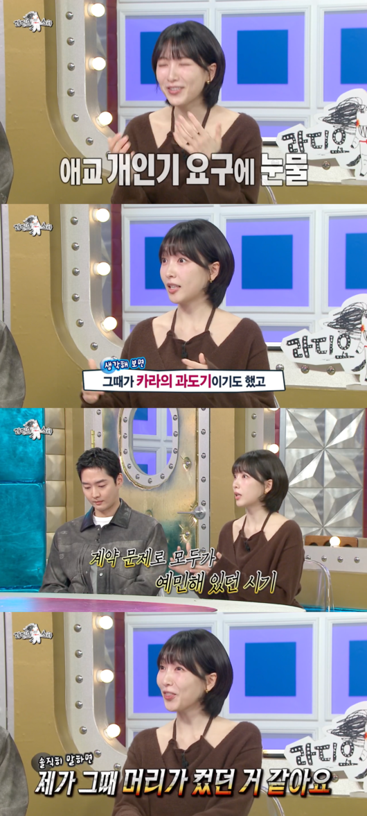 강지영은 “사실 그 당시 ‘라스’는 아이돌에게 두려운 예능이었다. 애교를 보여달라고 해서 못 한다고 울었다. 그런데 눈물을 흘린 게 이슈가 됐다”라고 회상했다.