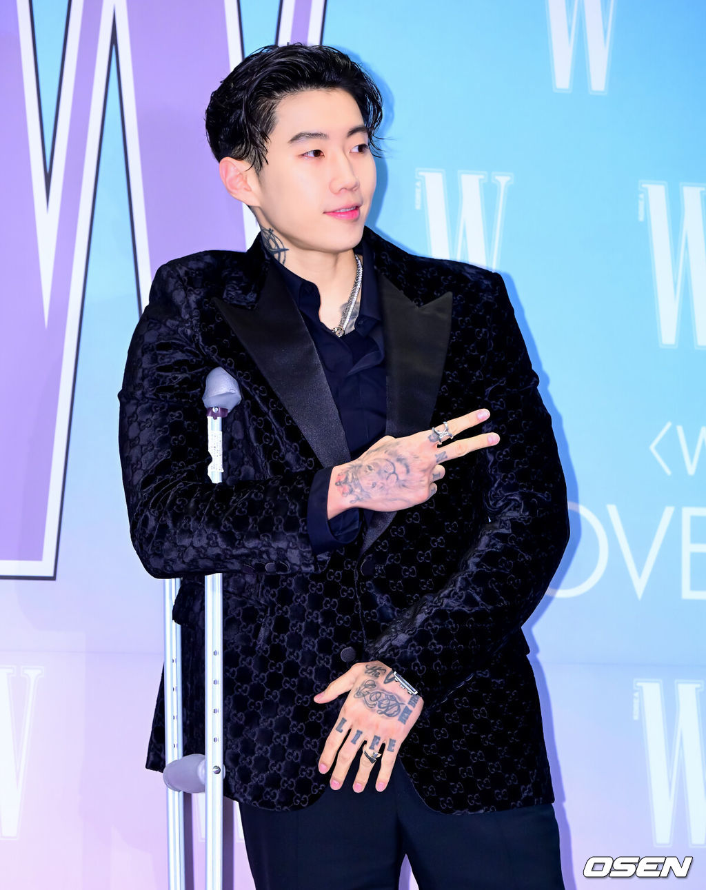 지난 15일 서울의 한 호텔에서 W Korea 주최로 유방암 인식 향상 캠페인 행사 'Love Your W 2025'가 개최됐다. 박재범은 이 자리에 다리 부상으로 인해 목발을 짚으면서도 참석했다.