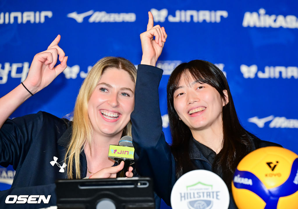 현대건설 카리와 김다인이 포즈를 취하고 있다. 2025.10.16 / soul1014@osen.co.kr