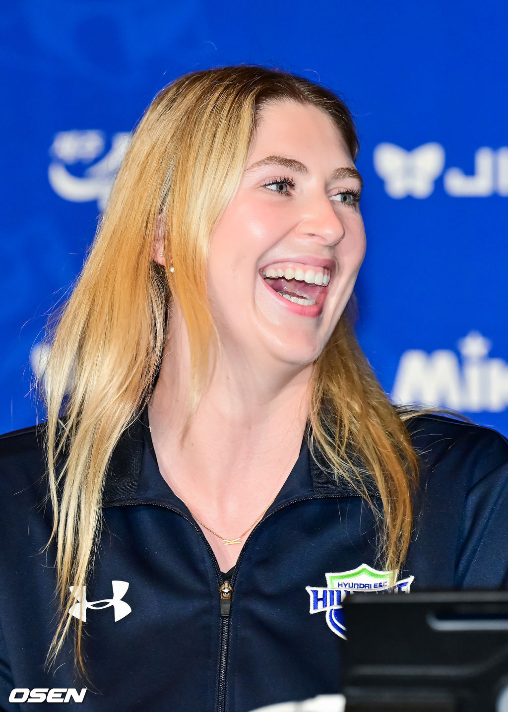 현대건설 카리가 미소 짓고 있다. 2025.10.16 / soul1014@osen.co.kr