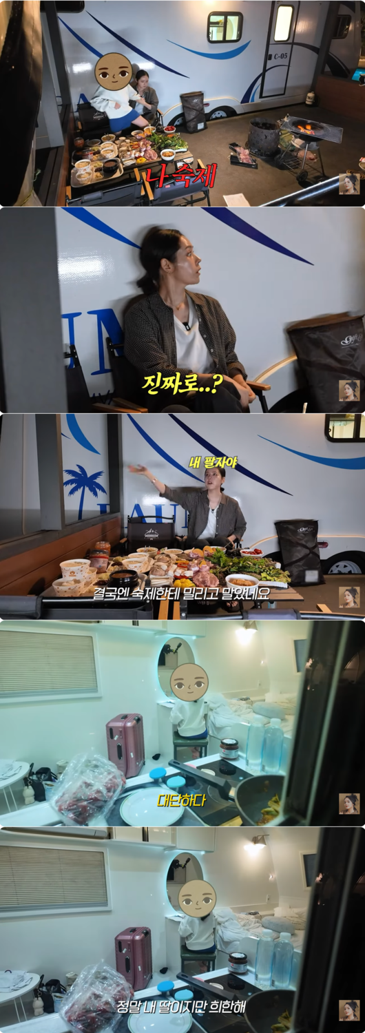 한가인의 딸 제이가 캠핑 중에도 철저한 모범생 면모를 보여 놀라움을 안겼다.