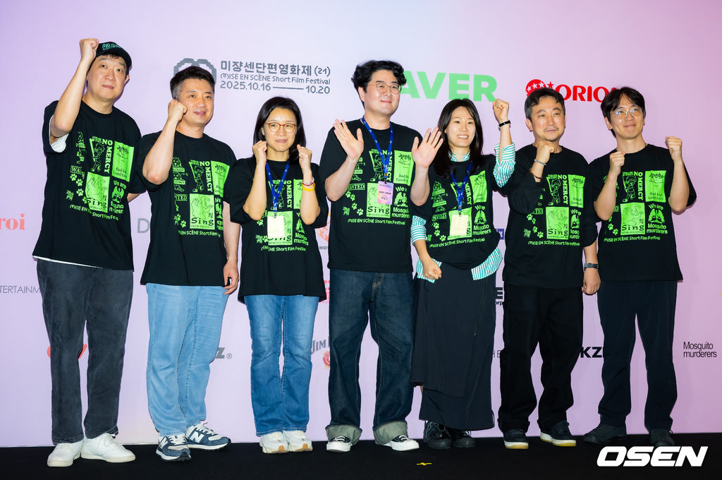 ‘제21회 미쟝센단편영화제’집행위원회(감독 엄태화, 윤가은, 이상근, 이옥섭, 장재현, 조성희, 한준희)가 포즈를 취하고 있다. 2025.10.16 /rumi@osen.co.kr