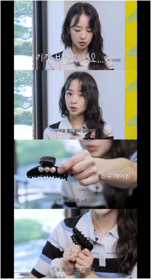이어 손연재는 진주가 박힌 집게핀을 공개했다. 손연재는 “이건 알렉산드르 파리라는 브랜드의 진주 헤어핀이다. 고급스럽지 않냐”라고 말하더니 “이것도 편집샵에서 보다가 너무 예뻤다. 러블리해지고 싶을 때 진주가 진짜 진주 같다. 좀 비쌌다”라고 말했다. 손연재는 “사실 이걸 들고 이렇게 비쌀 줄 몰랐다. 가격을 듣고 정말 깜짝 놀랐다”라며 연거푸 말했고, 제작진은 “얼마였냐”라고 물었다. 손연재는 차마 대답하지 못했으나 자막에는 '약 46만 원'이라고 떴다.