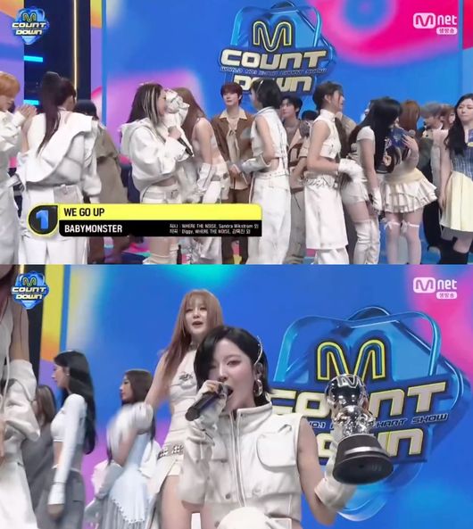 同日、BABYMONSTERはMnetの音楽番組『M COUNTDOWN』でもタイトル曲「WE GO UP」で10月第3週の1位を獲得し、デビュー後初となる音楽番組1位トロフィーを手にした。